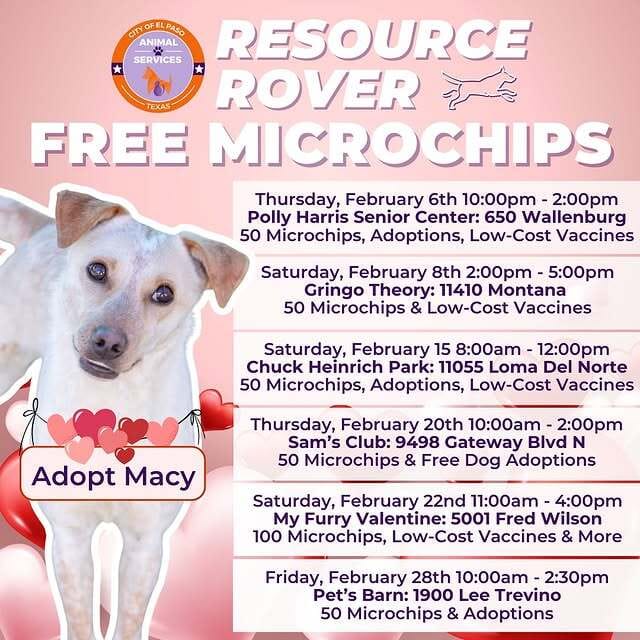 This Valentine’s season, show your pet some love with a free microchip! Microchips help lost pets find their way home—90% of missing pets without one never return! Get there early to assure you get your chip. Check out the post below for more info.