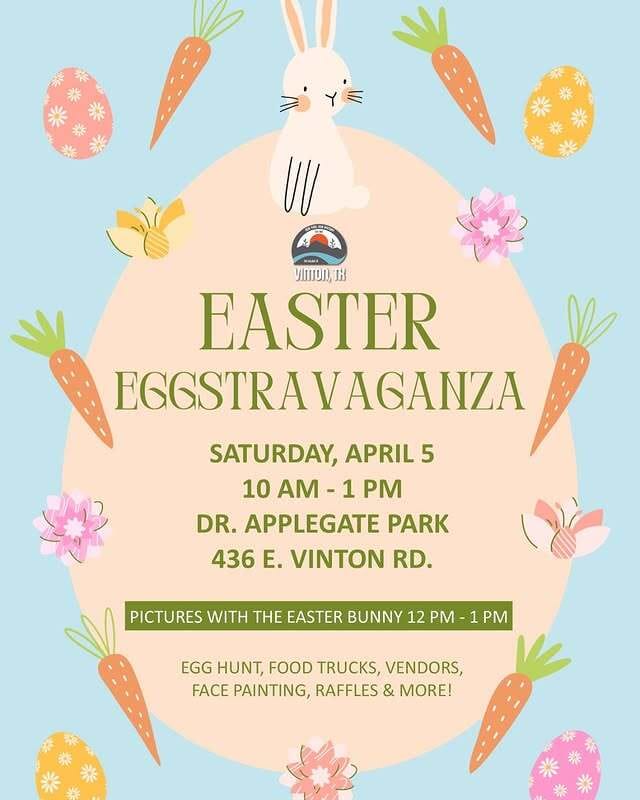Easter Eggstravaganza happening this Saturday! Enjoy egg hunts, food trucks, and photos with the Easter Bunny at Dr. Applegate Park.
