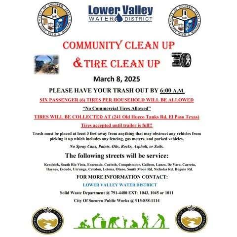 Do you have some old junk around your house you want to get rid of? On March 8th from 6 A.M. to 5 P.M. bring your trash and up to 6 passenger tires to 241 Old Hueco Tanks Rd (no commercial tires) to dispose of them without any charge. It’s a city initiative to help clean up the area. Check out the post below for more details.