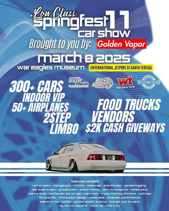 Join the Lowrider More Than Music Car Show this Sunday, March 9th, from 11:00 A.M. to 7:00 P.M. at Pockets, 9484 Dyer Street! Enjoy cool cars, live music from international and local rappers, and more. This event is perfect for anyone into low riders and music.