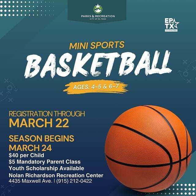 Mini Sports Basketball is expanding! Registration is now open for the Nolan Richardson Recreation Center, with sessions starting March 24th. Kids ages 4-7 can register from now until March 22. For more info, call 915-212-0422 or check out the post below.