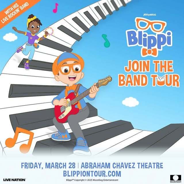 Are your kids into Blippi? Blippi: Join the Band Tour is coming to El Paso on March 28th at the Abraham Chavez Theatre! Blippi and Meekah, along with live musicians, will explore the world of music, from sounds to rhythms, and instruments. Get ready to dance, sing, and play along to all your favorite Blippi songs in this interactive family-friendly show. You can grab your tickets here.